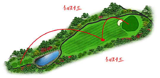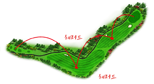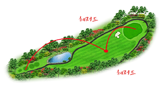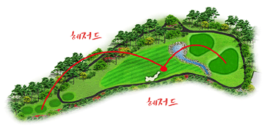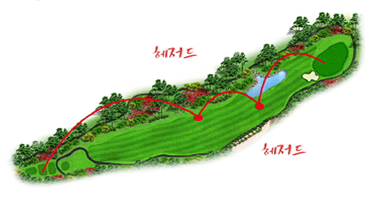 드라이브샷이 슬라이스가 심하게 나는 홀로서 좌측시면을 보고 티샷한다면 페어웨이 안착이 무난하며, 그린앞에 워터해저드가 위치하고 있으므로 신중한 공략이 필요하다.