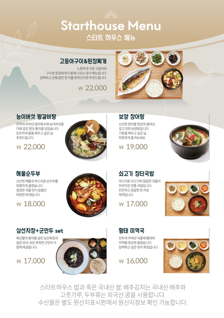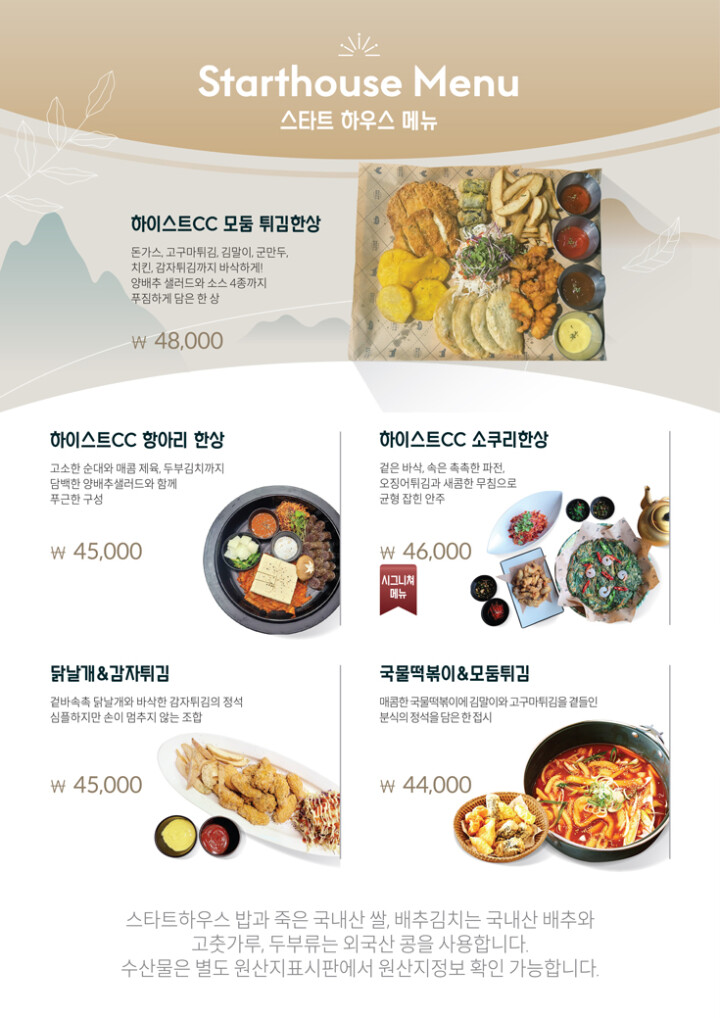 스타트하우스 메뉴