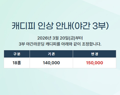 캐디피 인상 안내(야간 3부)